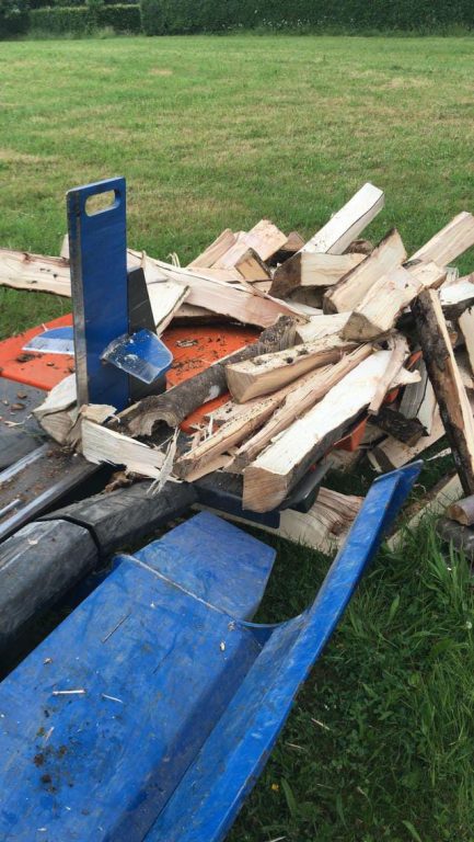 Nach dem Spalten landen die Holzscheite auf einem großzügigen Sammeltisch. Dieser ermöglicht entweder das Zurückführen ins Spaltwerkzeug oder eine einfache Entnahme zur weiteren Verarbeitung.
