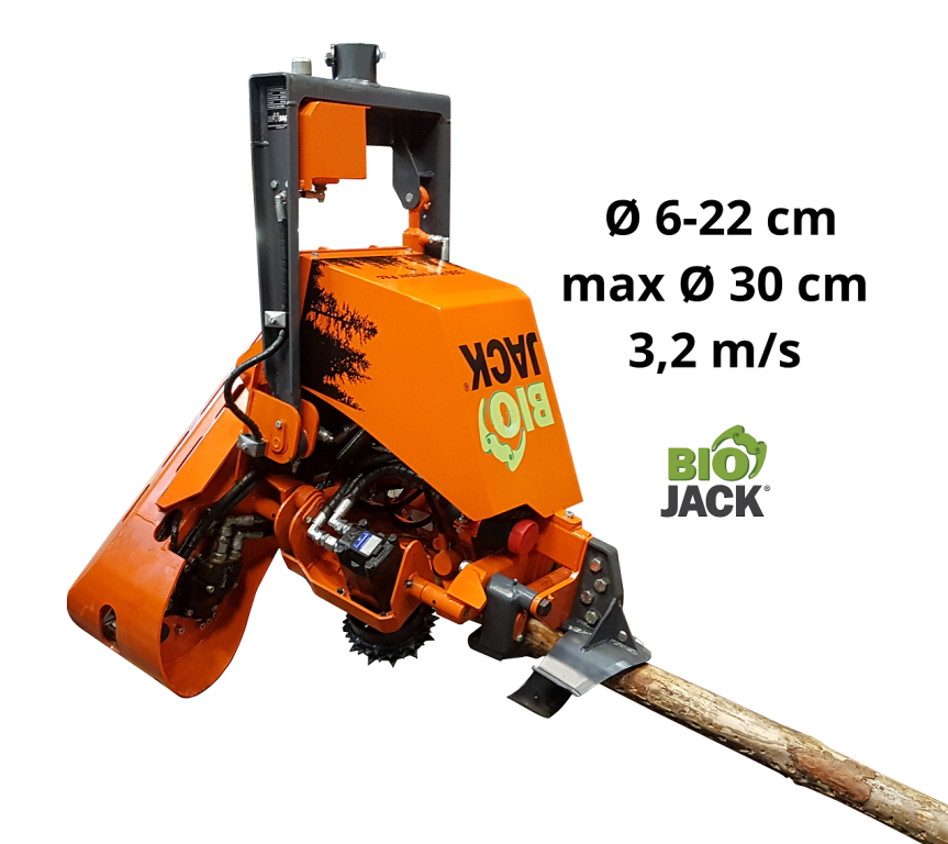 Er ist mit einer Sägeeinheit, Vorschubwalzen und drei Entsatungmesser ausgestattet. Die Längenmessung ist standardmäßig in der PRO-Version mit dem Logger®-Steuerungssystem enthalten, und die Volumenberechnung ist optional. Die Sägekettenschmierung ist automatisiert und arbeitet mit dem speziellen Kettenöltank.