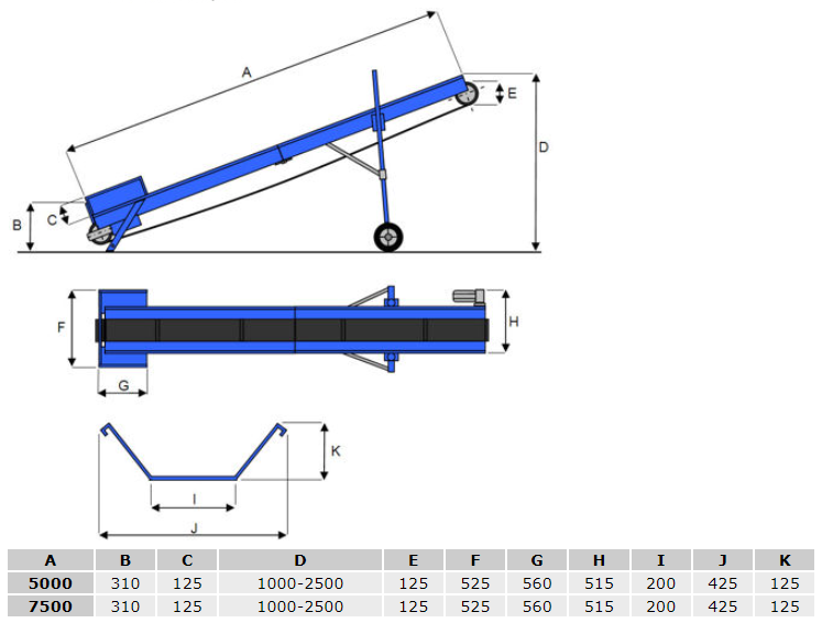 Das Förderband wird in 2,50 m Sektionen geliefert und mit verzinktem Verbindungsblechen verschraubt. Hochwertige solide Qualität. Der Elektromotor mit Schneckengetriebe treibt das Band an. Der Elektromotor kann entweder als 230V oder 400V geliefert werden. Als Förderbandbreite gibt es das 100 mm Band und das 200 mm Band.