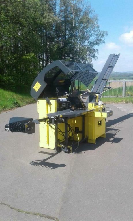 Regon R3 bis 38 cm mit Zapfwellenantrieb mit integriertem Stammheber und schwenkbarem Förderband, halbautomatisch und Auto-Start-System, Joystick-Bedienung