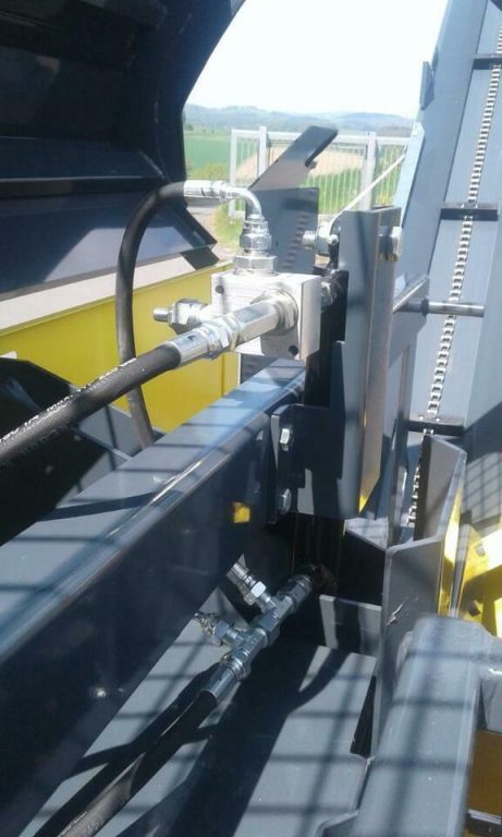 Hydraulisch höhenverstellbares, aber immer frei bewegliches und werkzeuglos zu wechselndes 2/4-fach Kombimesser, 6 Fach Spaltkreuz (gegen Aufpreis)