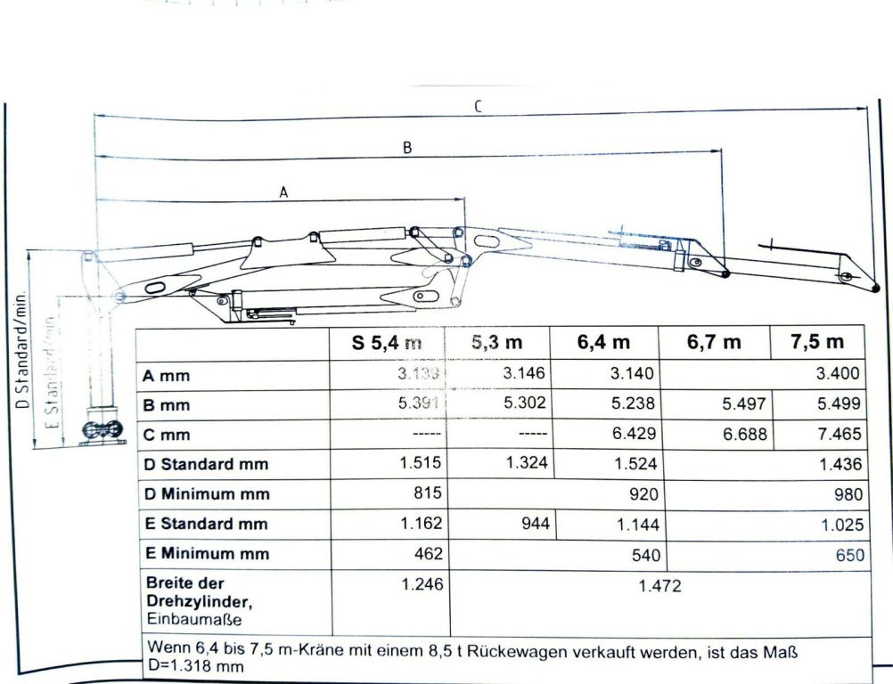 – Kran 6.40m mit Teleskop, 929 kg Hubkraft bei 4m